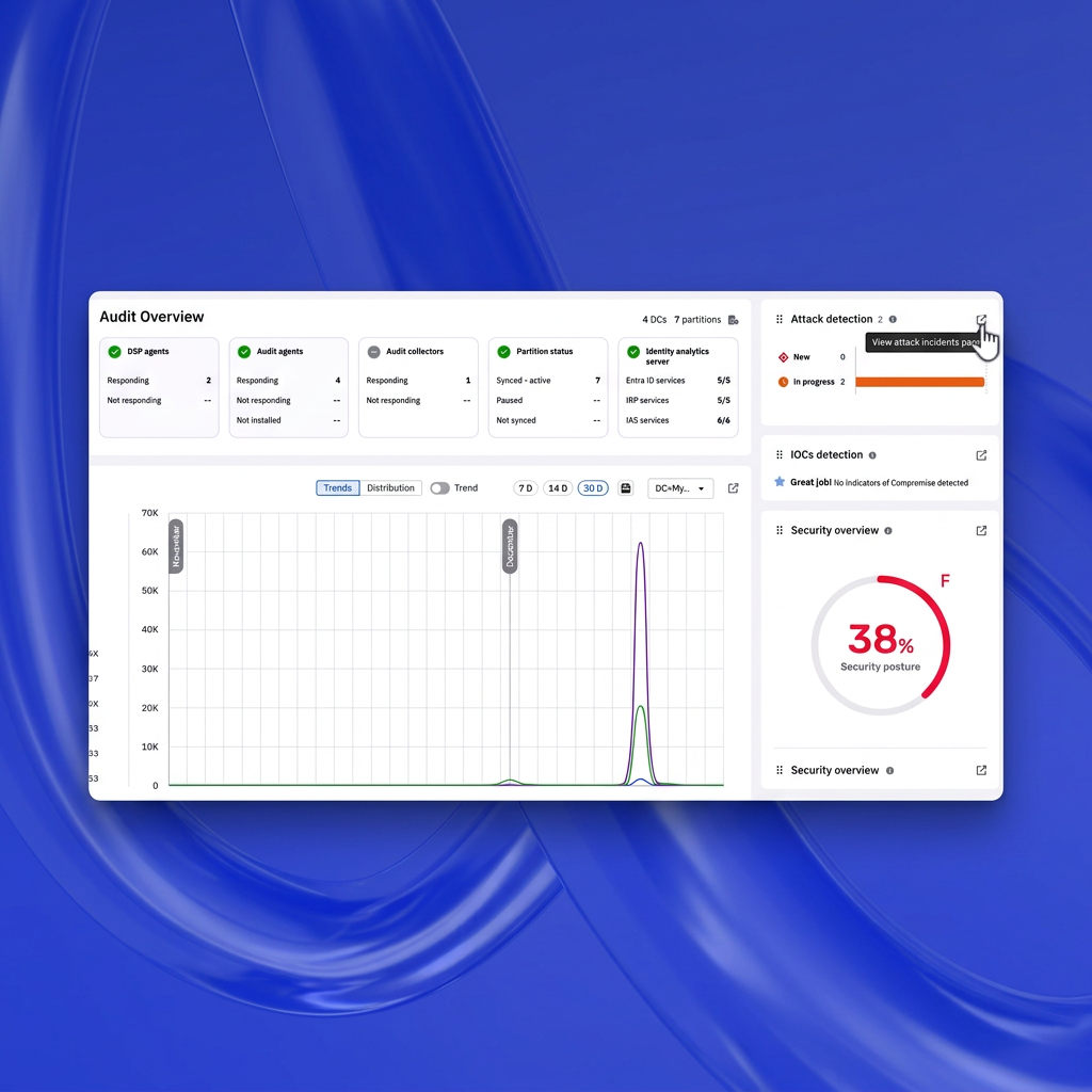 - See AD and Entra ID vulnerabilities in a single dashboard to catch attacks that move from on-prem to cloud, and vice versa
