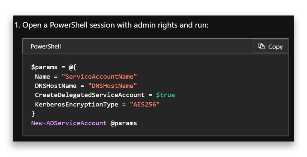 According to Microsoft’s documentation, to create dMSAs, we start with the CreateDelegatedServiceAccount command that Figure 1 shows.