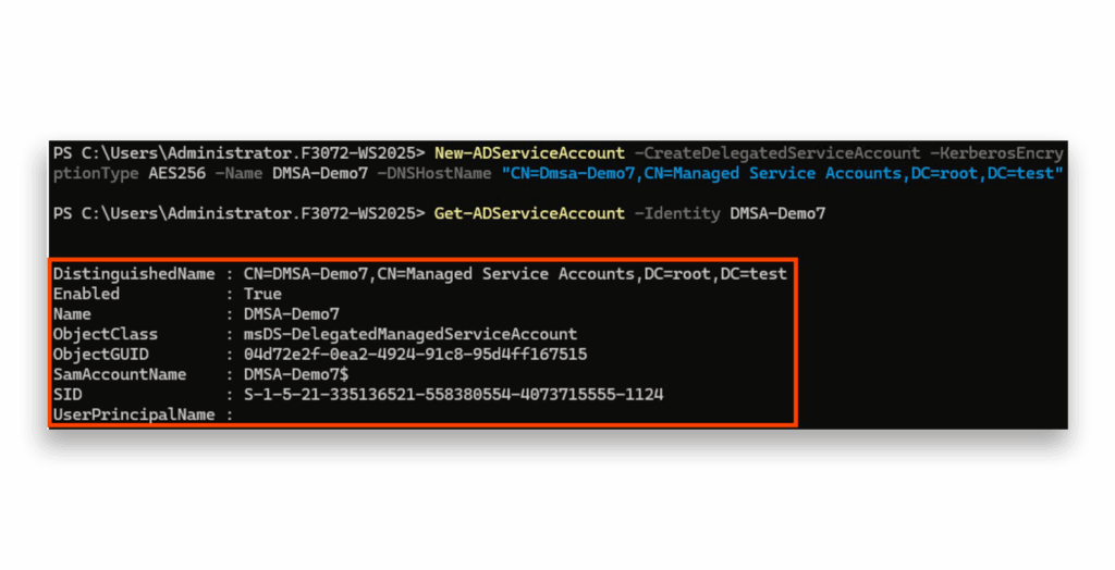 Now comes the fun part. Let’s try to display our newly created DMSA-Demo account using Get-ADServiceAccount (Figure 2).