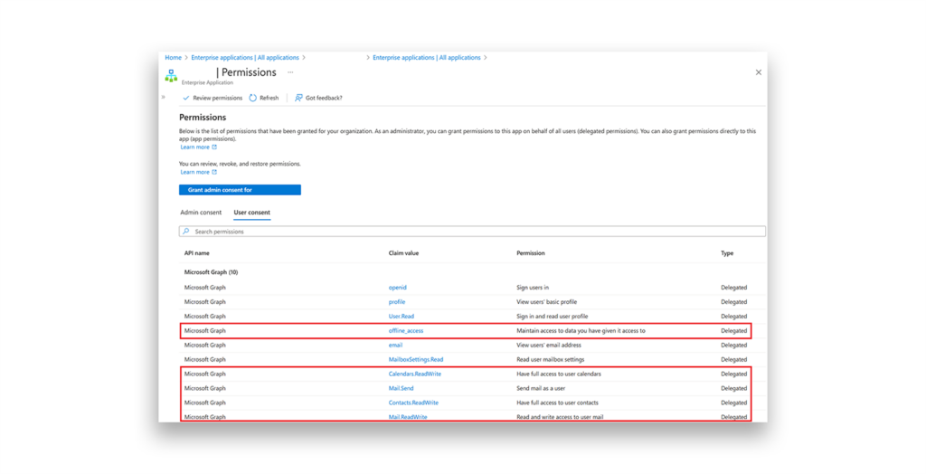 During our initial research, we discovered a vulnerable application that had integrations with Microsoft 365 with Calendars.ReadWrite.Shared permissions. Per Microsoft documentation, this integration:
