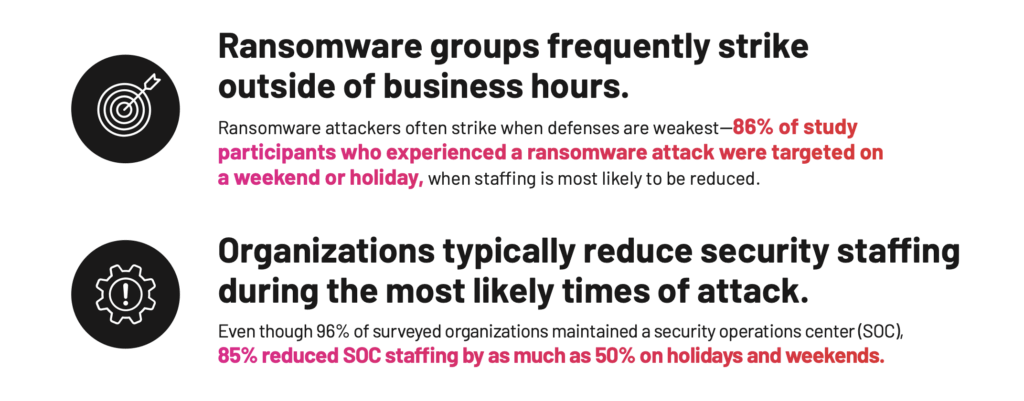 Les auteurs d'attaques par ransomware frappent lorsque la couverture de sécurité est plus faible ou lorsque les entreprises sont distraites.
